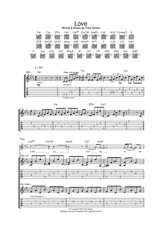 Digital Sheet Music for Love by Paul Simon scored for Guitar Tab; id:377244