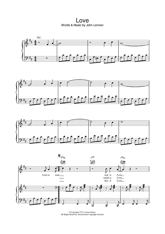 Digital Sheet Music for Love by John Lennon scored for Piano/Vocal/Chords; id:378636