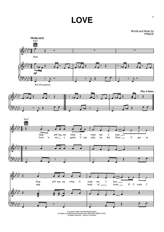 Digital Sheet Music for Love by Prince scored for Piano/Vocal/Chords; id:391055