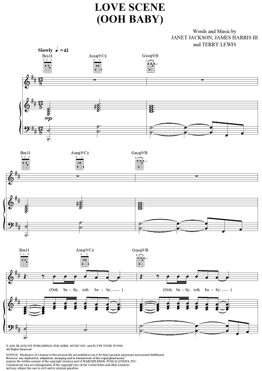 Digital Sheet Music for Love Scene (Ooh Baby) by Janet Jackson, Jimmy Jam, Terry Lewis scored for Piano/Vocal/Chords; id:285723