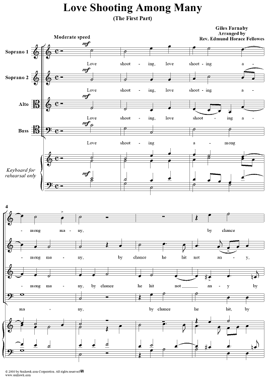 Digital Sheet Music for Love Shooting Among Many by Giles Farnaby, Rev. Edmund Horace Fellowes scored for Four-part Mixed Chorus; id:269695
