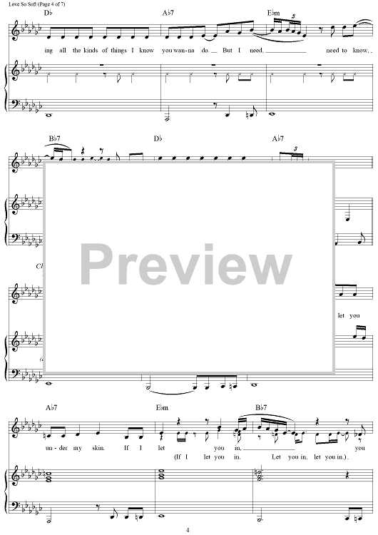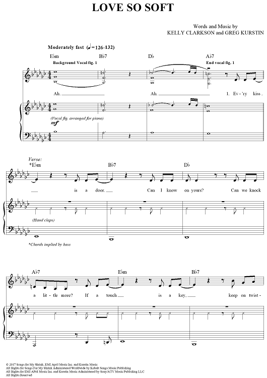 Digital Sheet Music for Love So Soft by Greg Kurstin, Kelly Clarkson scored for Piano/Vocal/Chords; id:465623