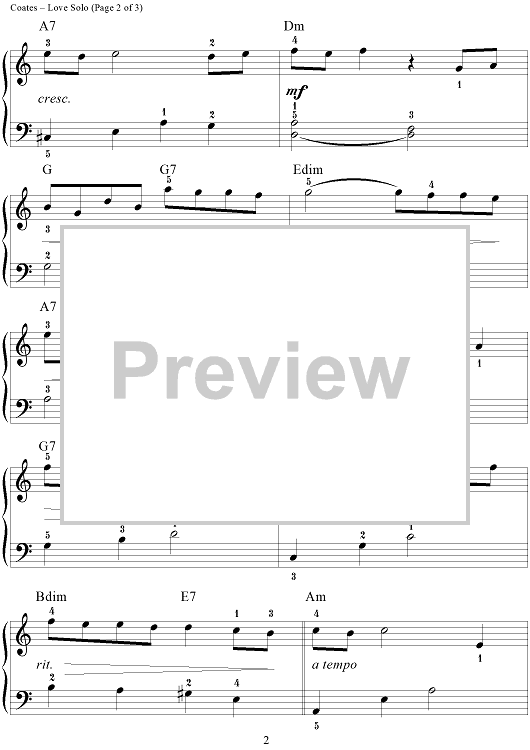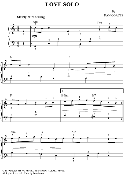 Digital Sheet Music for Love Solo by Dan Coates scored for Big Note Piano; id:453197
