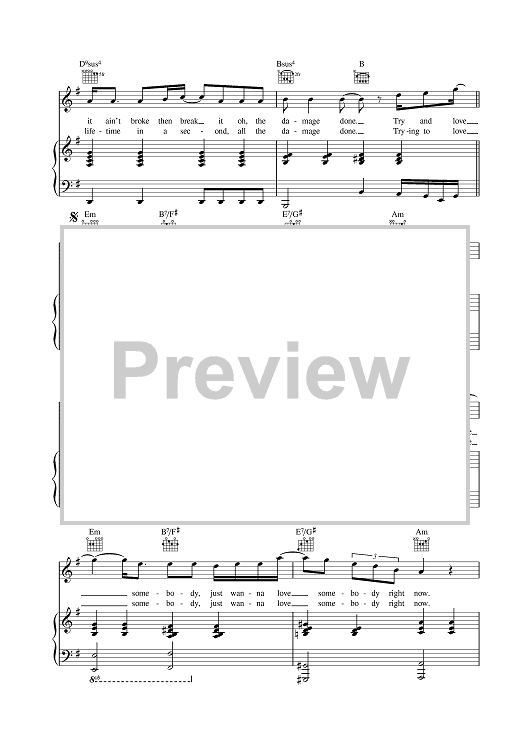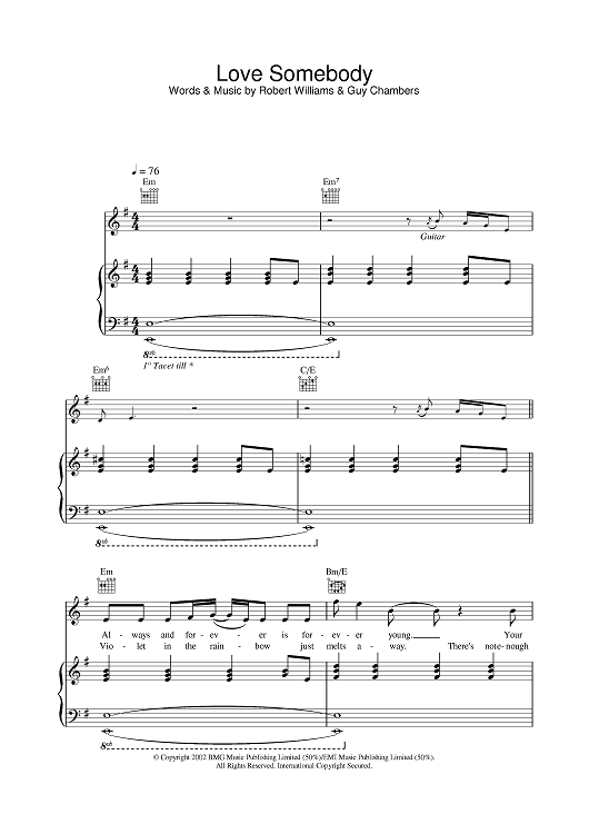 Digital Sheet Music for Love Somebody by Robbie Williams scored for Piano/Vocal/Chords; id:377818