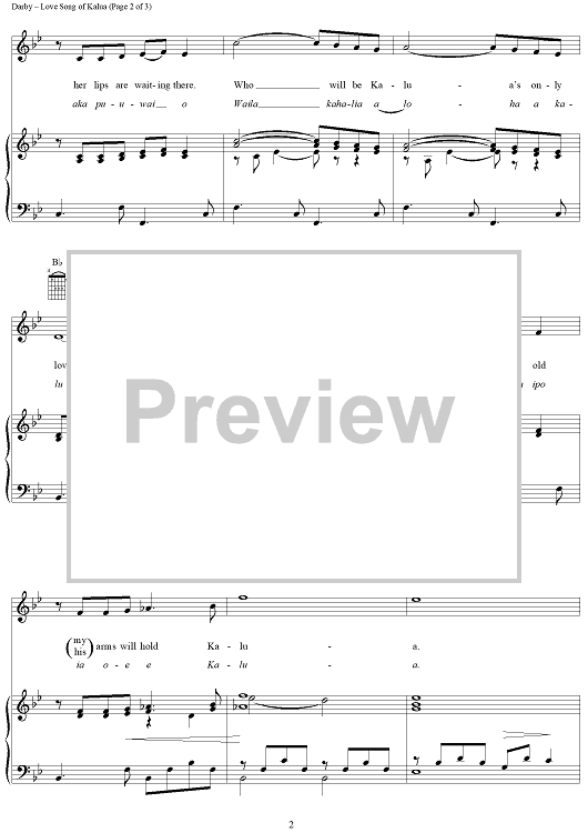Digital Sheet Music for Love Song of Kalua by Ken Darby scored for Piano/Vocal/Chords; id:272794