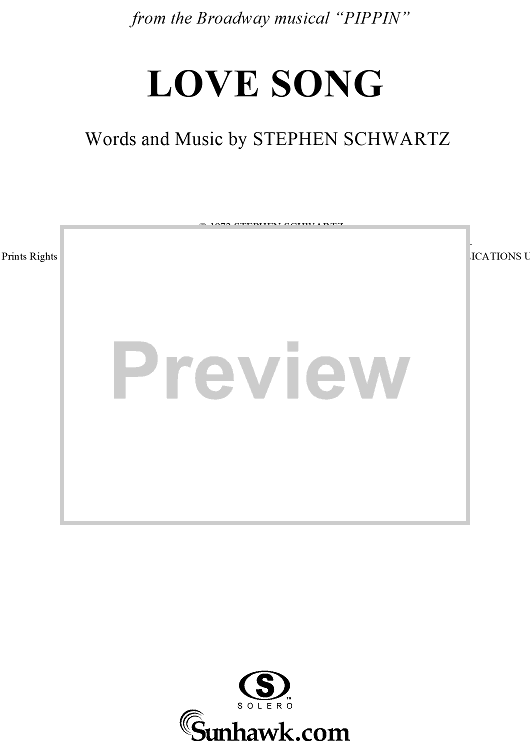 Digital Sheet Music for Love Song by Stephen Schwartz scored for Piano/Vocal/Chords; id:112769