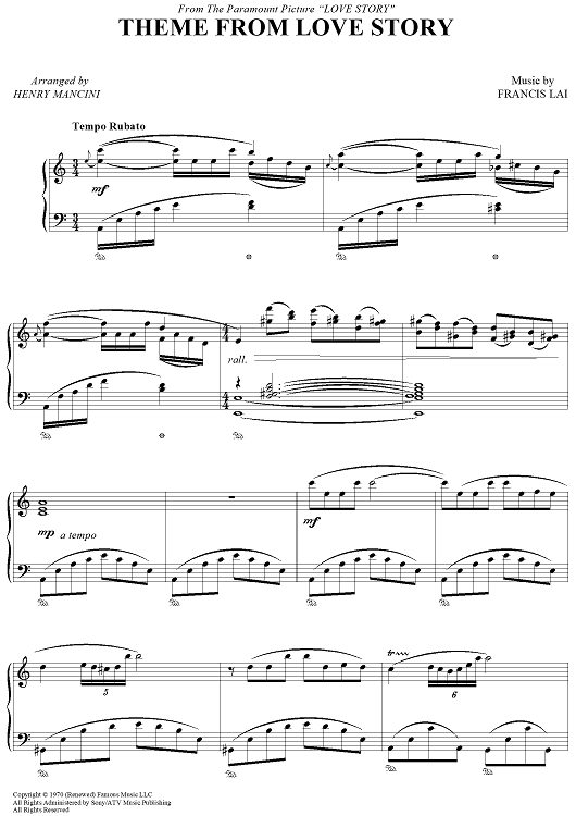 Digital Sheet Music for Love Story by Henry Mancini, Francis Lai scored for Piano; id:431905
