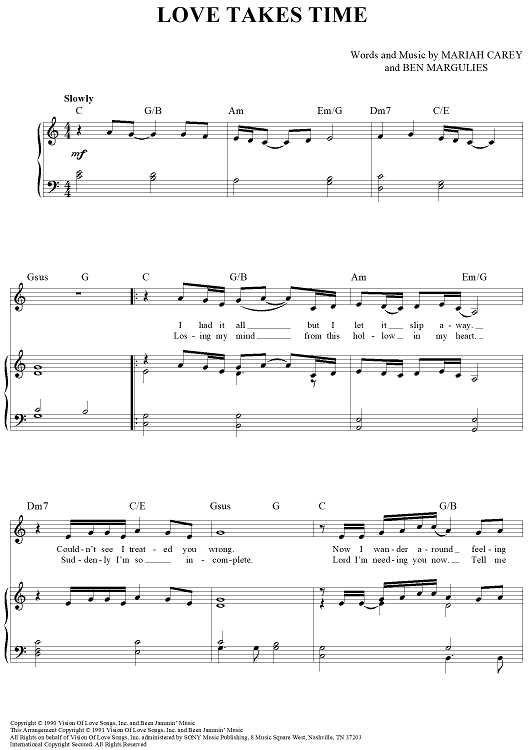 Digital Sheet Music for Love Takes Time by Mariah Carey, Ben Margulies scored for Piano/Vocal/Chords; id:362920