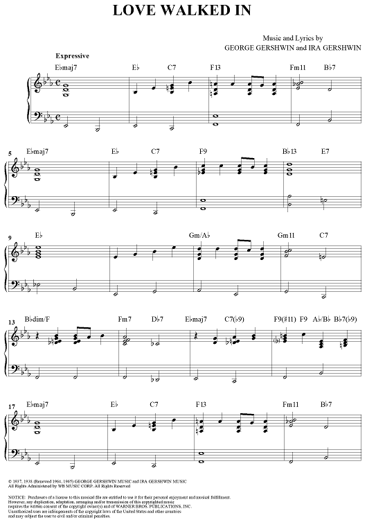 Digital Sheet Music for Love Walked In by George Gershwin, Ira Gershwin, Lou Stein scored for Piano Solo; id:287025