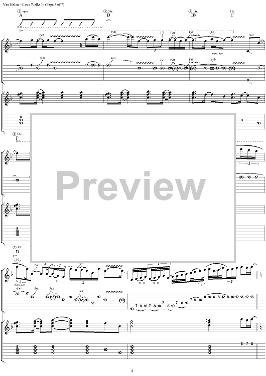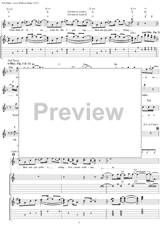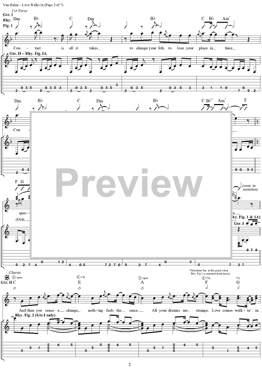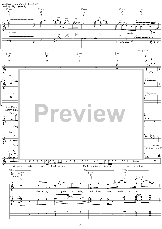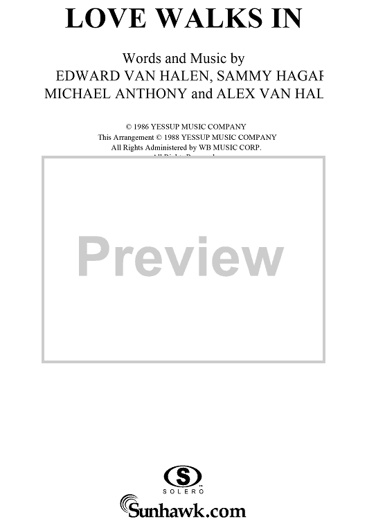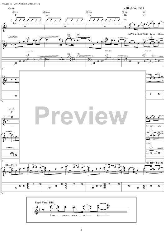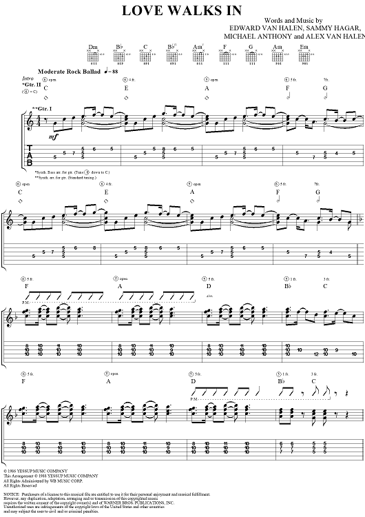 Digital Sheet Music for Love Walks In by Eddie Van Halen, Sammy Hagar, Michael Anthony, Alex Van Halen, Van Halen scored for Guitar Tab/Vocal; id:112918