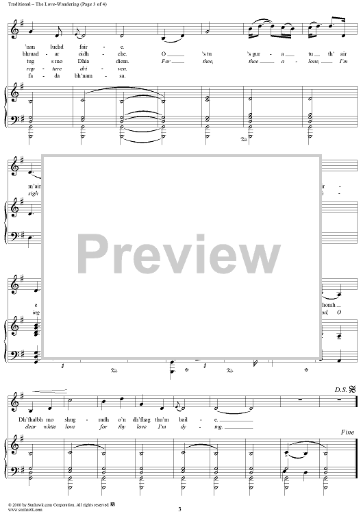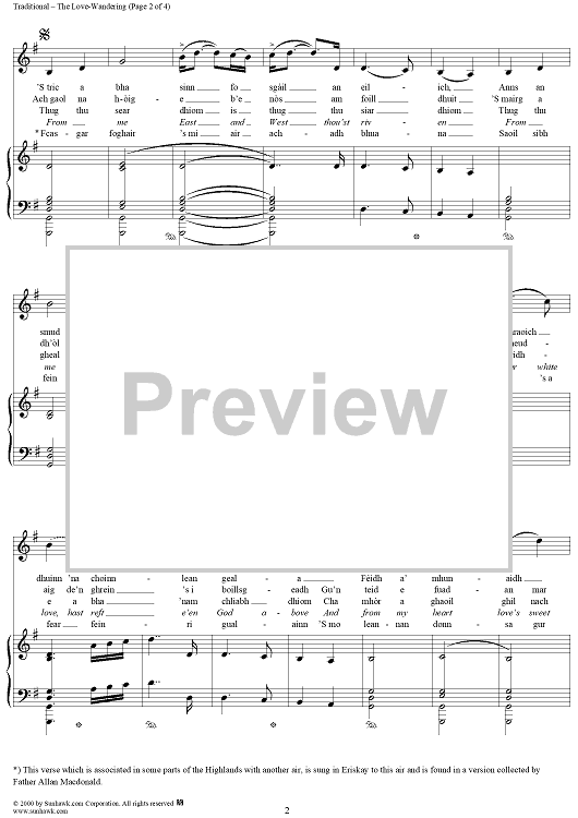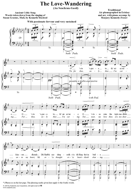 Digital Sheet Music for Love-Wandering, An Seachran-Gaoil by Marjory Kennedy-Fraser, Traditional scored for Piano/Vocal; id:259403