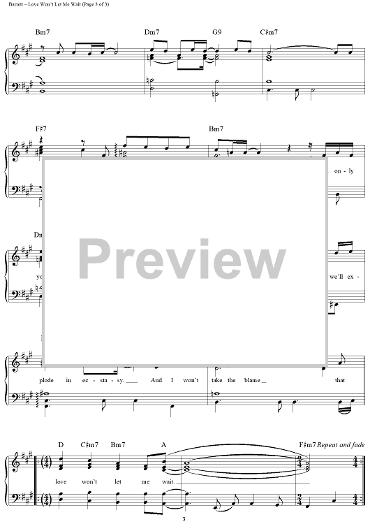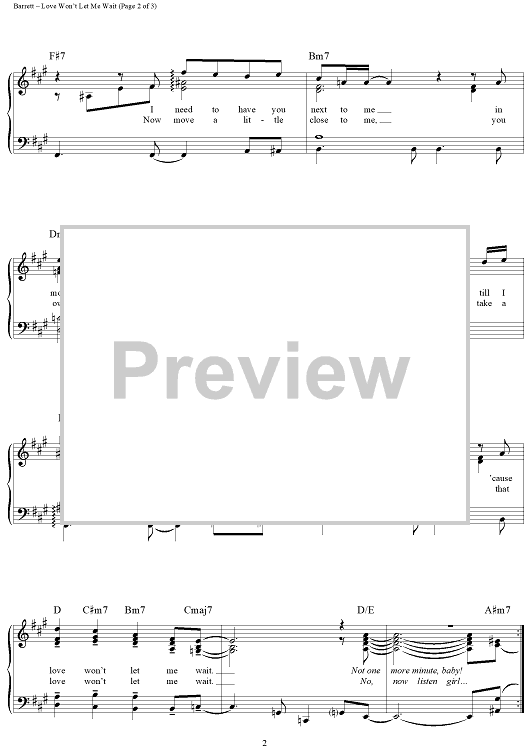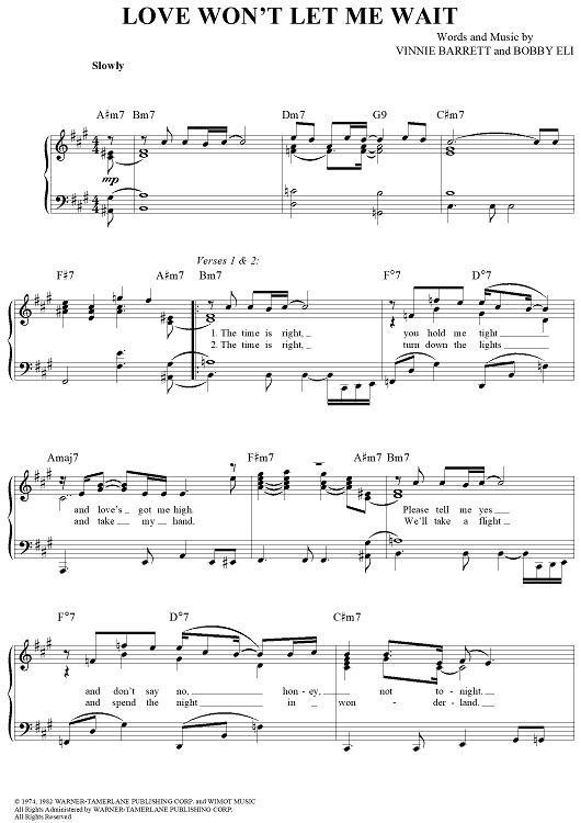 Digital Sheet Music for Love Won't Let Me Wait by Major Harris, Vinnie Barrett, Bobby Eli scored for Piano/Vocal/Chords; id:288242