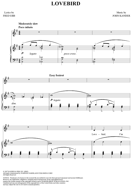 Digital Sheet Music for Lovebird by John Kander, Fred Ebb scored for Piano/Vocal; id:311568