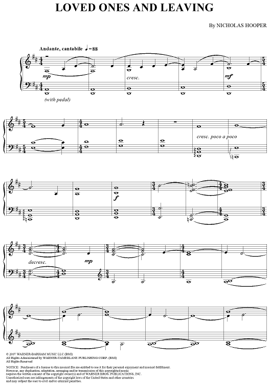 "Loved Ones and Leaving" Sheet Music by Nicholas Hooper