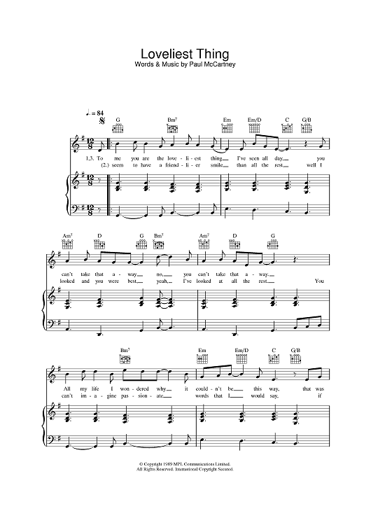 Digital Sheet Music for Loveliest Thing by Paul McCartney scored for Piano/Vocal/Chords; id:378238