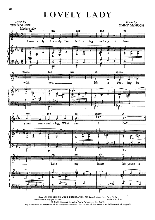 Digital Sheet Music for Lovely Lady by Ted Koehler, Jimmy McHugh, Dan Dailey scored for Piano/Vocal/Chords; id:423092