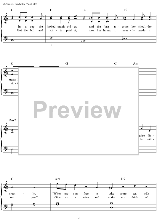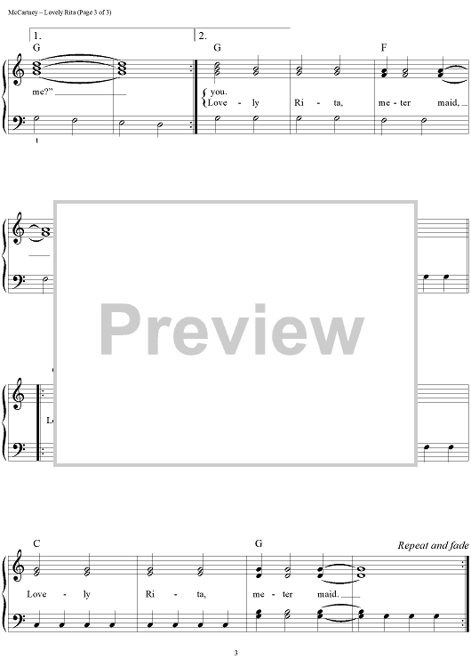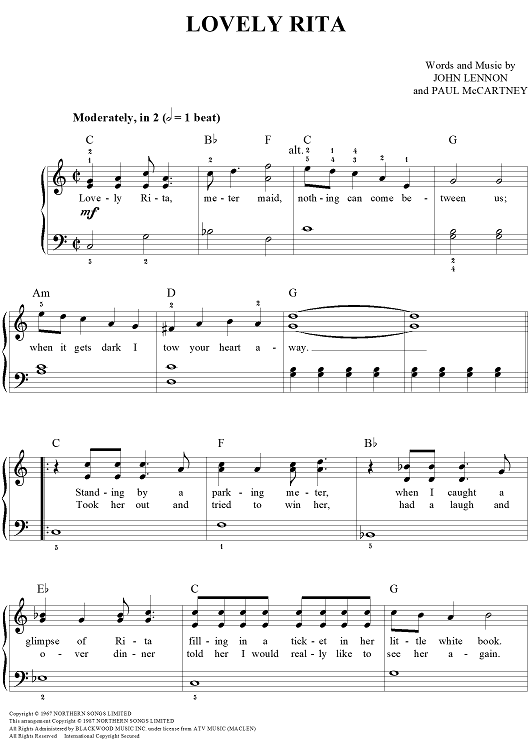 Digital Sheet Music for Lovely Rita by Paul McCartney, The Beatles, John Lennon scored for Easy Piano/Vocal/Chords; id:448675