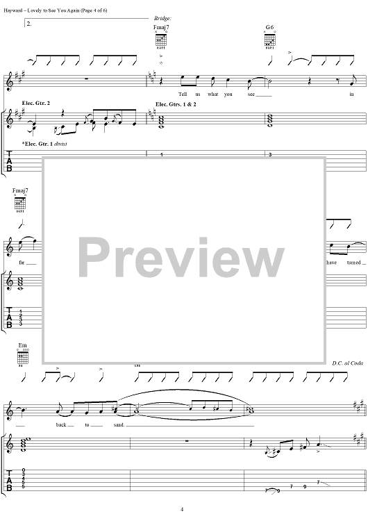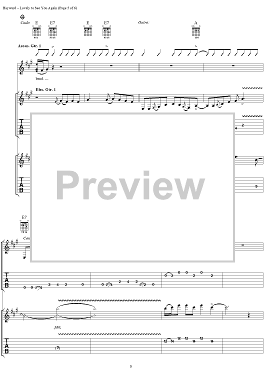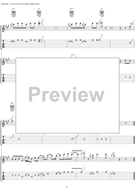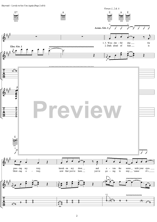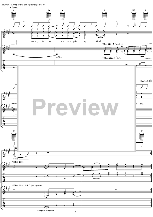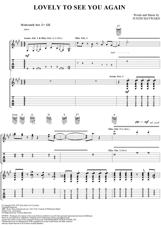Digital Sheet Music for Lovely to See You Again by Justin Hayward, Moody Blues scored for Guitar Tab/Vocal; id:288376