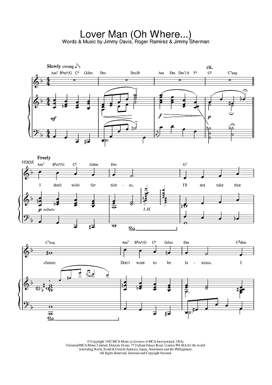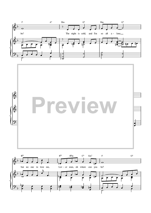 Digital Sheet Music for Lover Man (Oh Where Can You be) by Bessie Smith, Jimmy Sherman, Jimmie Davies, Roger Ram Ramirez scored for Piano; id:382684