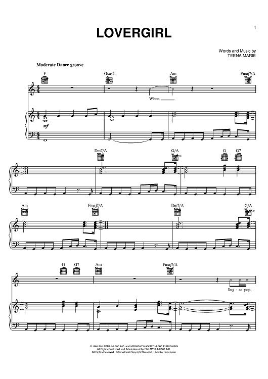 Digital Sheet Music for Lovergirl by Teena Marie scored for Piano/Vocal/Chords; id:394390