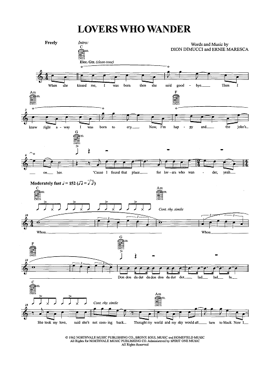 Digital Sheet Music for Lovers Who Wander by Ernie Maresca, Dion scored for Guitar Tab/Vocal/Chords; id:457327