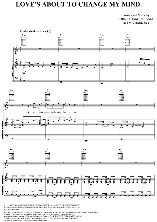 Digital Sheet Music for Love's About to Change My Mind by Jon Secada, Michael Jay, Johnny Jam, Delgado scored for Piano/Vocal/Chords; id:289194