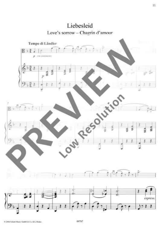 Apart from the collection of 'Classical Manuscripts' composed by Fritz Kreisler (1875-1962) and passed off by him as transcriptions of movements by old masters, the violonist published original works very early. Kreisler himself liked to play them as encore pieces, sweetening many a concert with such pieces of 'musical confectionary'. The most famous miniatures are undoubtedly 'Love's Joy' and 'Love's Sorrow', two 'old Viennese dance-tunes' in which Kreisler evoked the coffee-house atmosphere of his home town with wonderful melodies and beguiling harmonies. The miniatures are endearing, lively and catchy, yet with an elegiac air - but full of charm and elegance. These magnificent salon pieces are now available in an arrangement for viola and piano by Wolfgang Birtel.