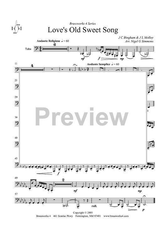 Digital Sheet Music for Love's Old Sweet Song - Tuba by James L. Molloy, Clifton Bingham, Nigel Simmons scored for Brass Ensemble; id:428593