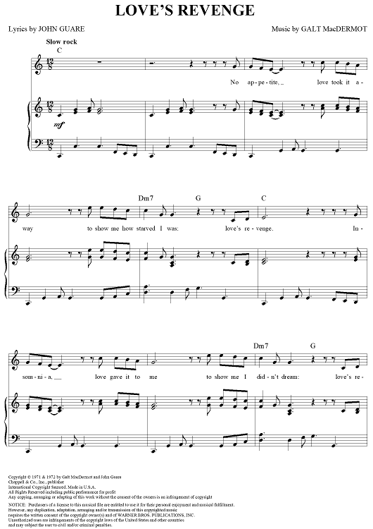 "Love's Revenge" Sheet Music by Galt MacDermot