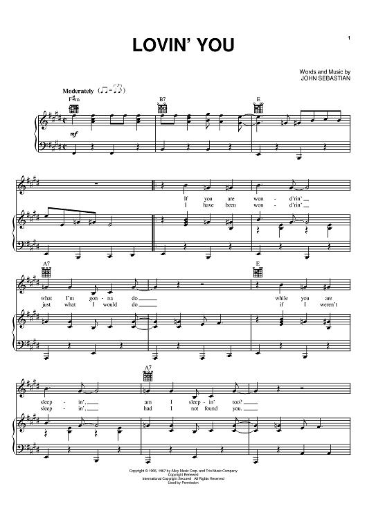 Digital Sheet Music for Lovin' You by Bobby Darin, John Sebastian scored for Piano/Vocal/Chords; id:388243