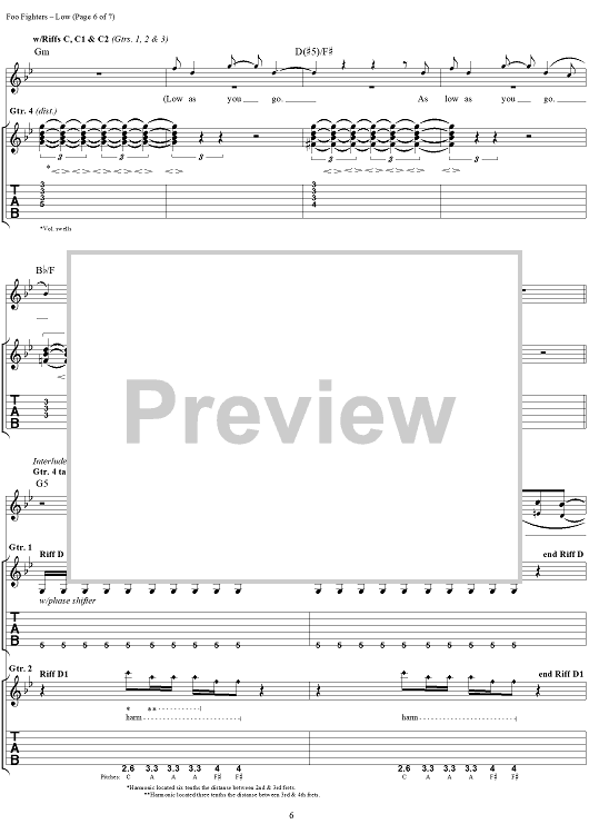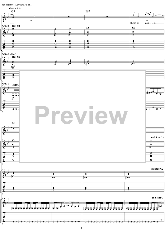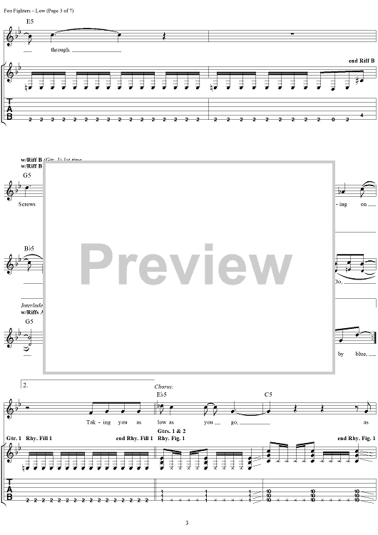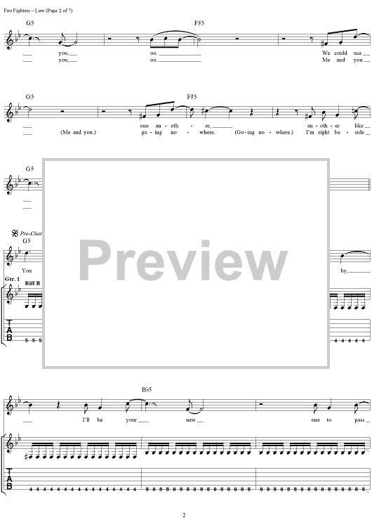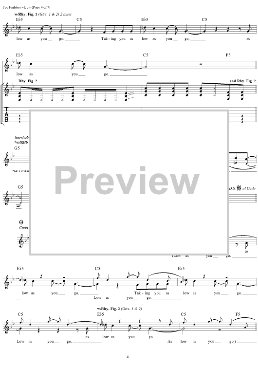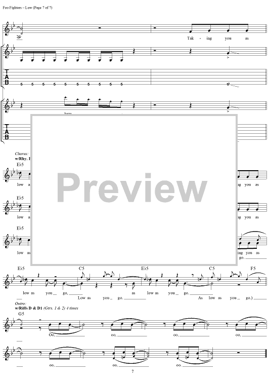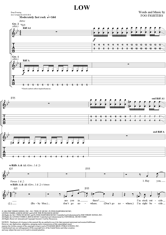 Digital Sheet Music for Low by Foo Fighters scored for Guitar Tab/Vocal; id:296968
