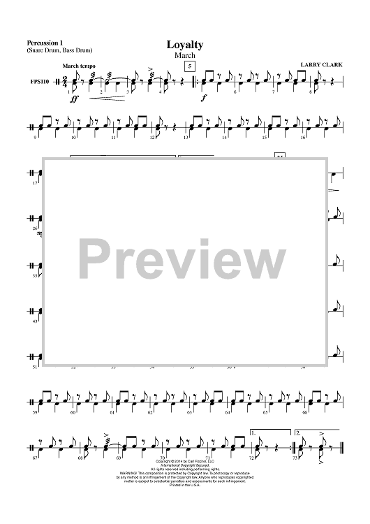 "Loyalty - Percussion 1" Sheet Music by Larry Clark