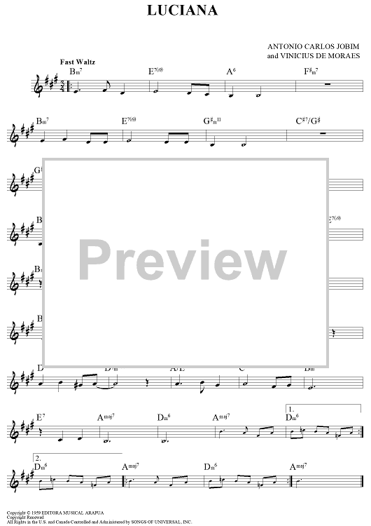 Digital Sheet Music for Luciana by Antonio Carlos Jobim, Vinicius de Moraes scored for Lead Sheet; id:452089