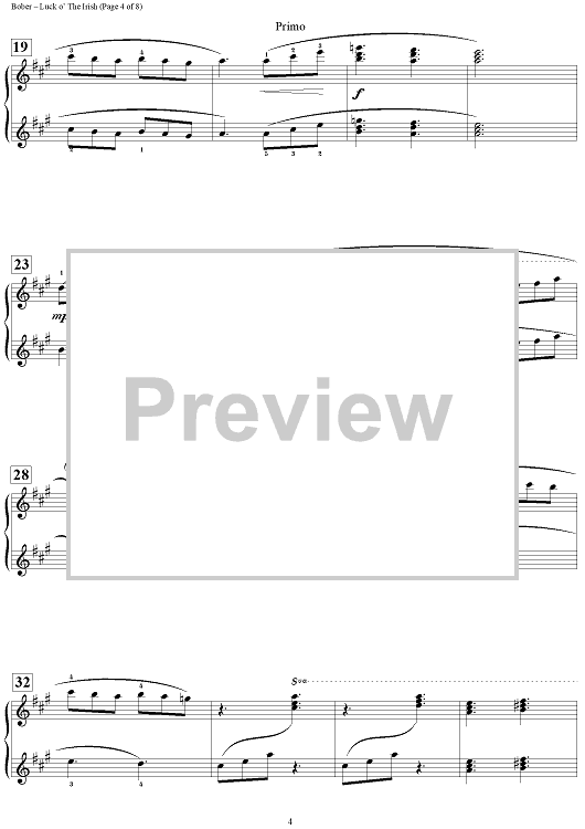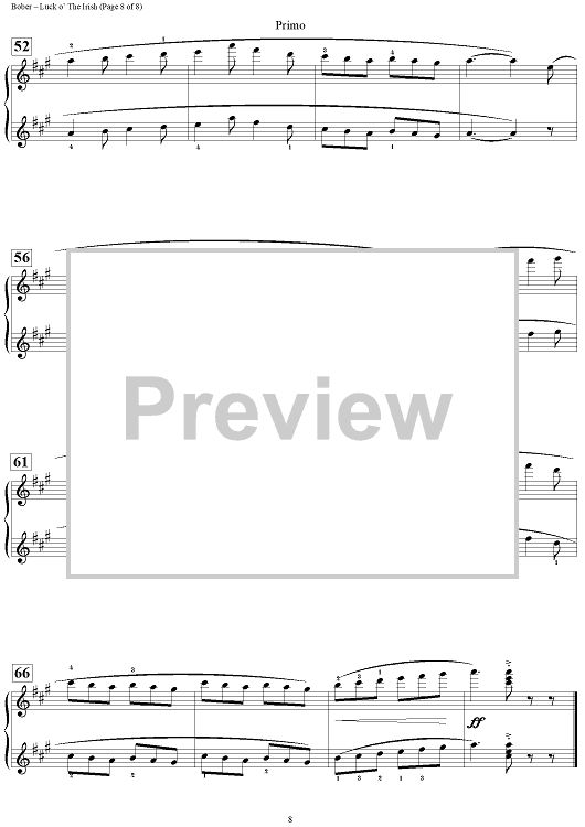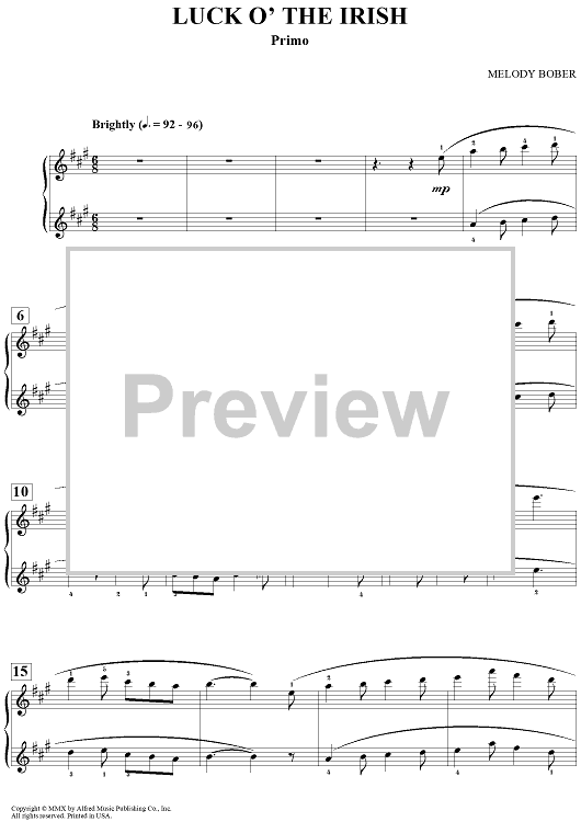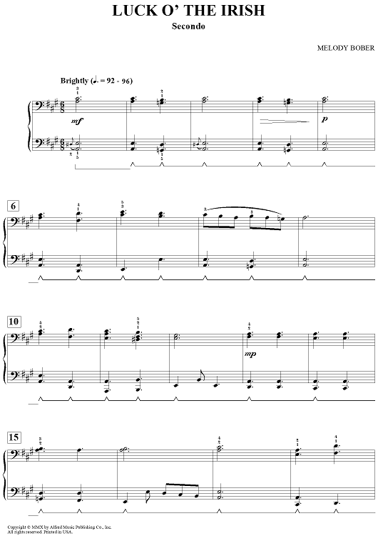 Digital Sheet Music for Luck O' The Irish by Melody Bober scored for 1 Piano, 4 Hands; id:464837