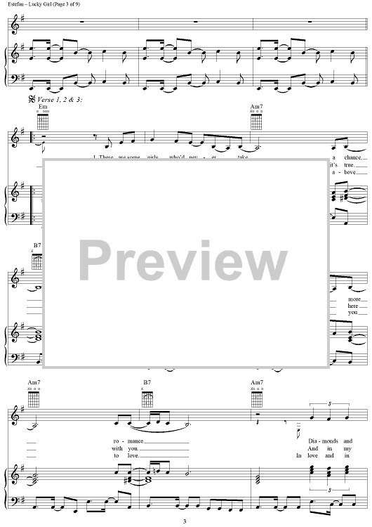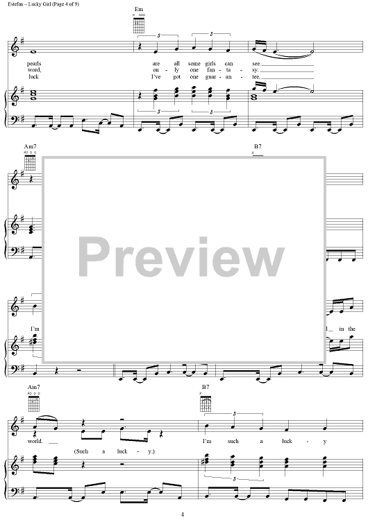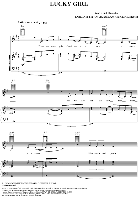 Digital Sheet Music for Lucky Girl by Gloria Estefan, Lawrence Dermer, Emilio Estefan Jr. scored for Piano/Vocal/Chords; id:270160