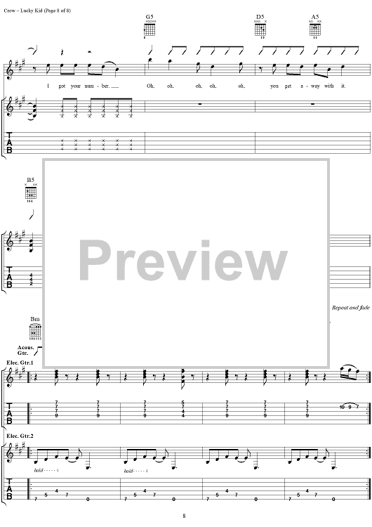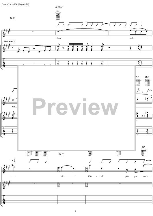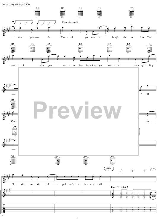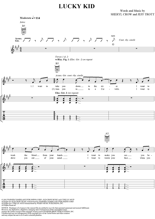 Digital Sheet Music for Lucky Kid by Sheryl Crow, Jeff Trott scored for Guitar Tab/Vocal; id:292056
