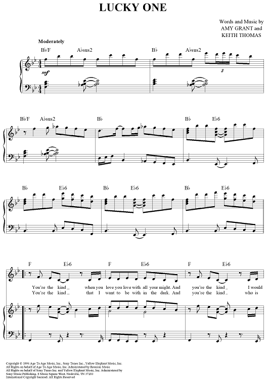 Digital Sheet Music for Lucky One by Keith Thomas, Amy Grant scored for Piano/Vocal/Chords; id:361671