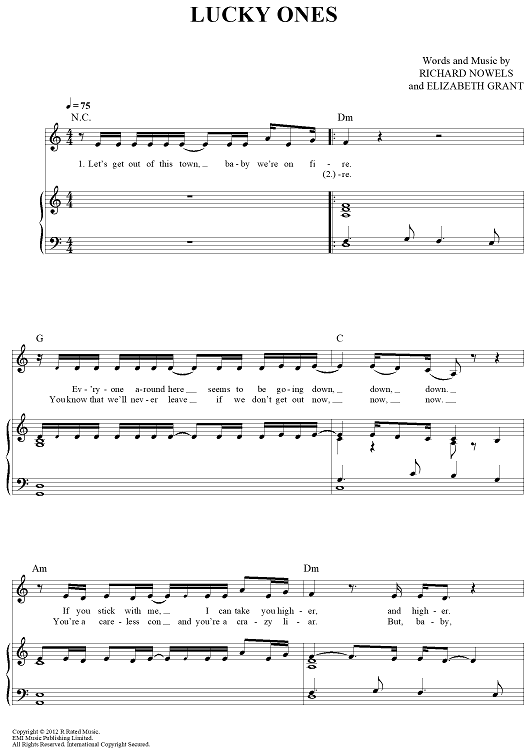 Digital Sheet Music for Lucky Ones by Rick Nowels, Elizabeth Grant, Lana Del Rey scored for Piano/Vocal/Chords; id:443791