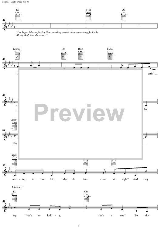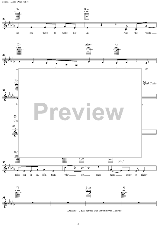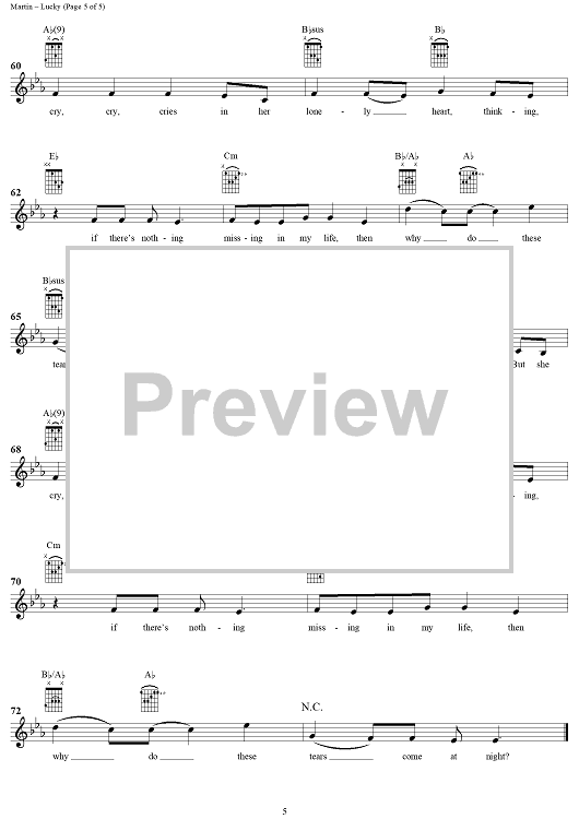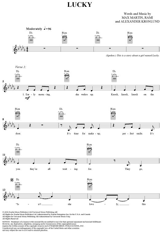 Digital Sheet Music for Lucky by Max Martin, Alexander Kronlund, Rami Yacoub, Britney Spears scored for Easy Guitar/Vocal; id:285743