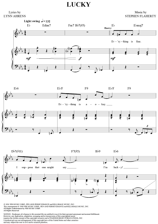 Digital Sheet Music for Lucky by Stephen Flaherty, Lynn Ahrens scored for Piano/Vocal/Chords; id:311577