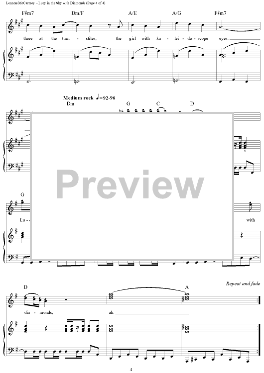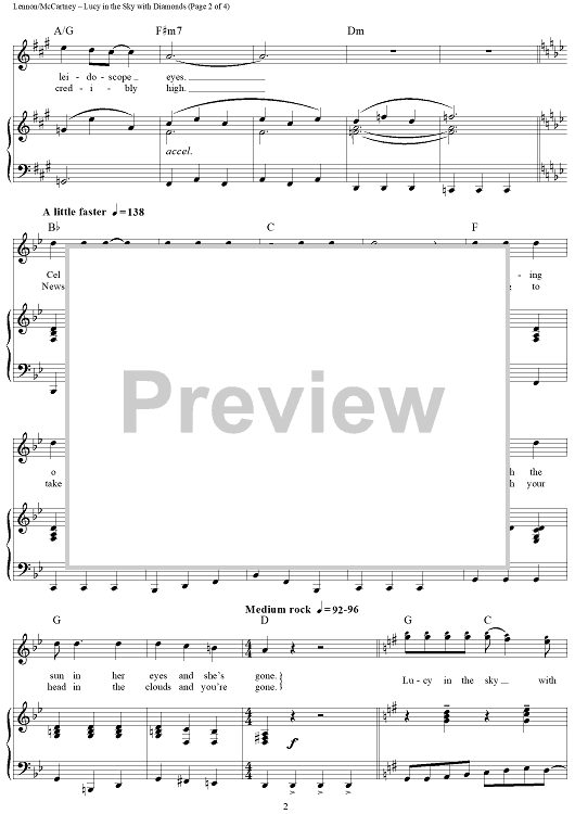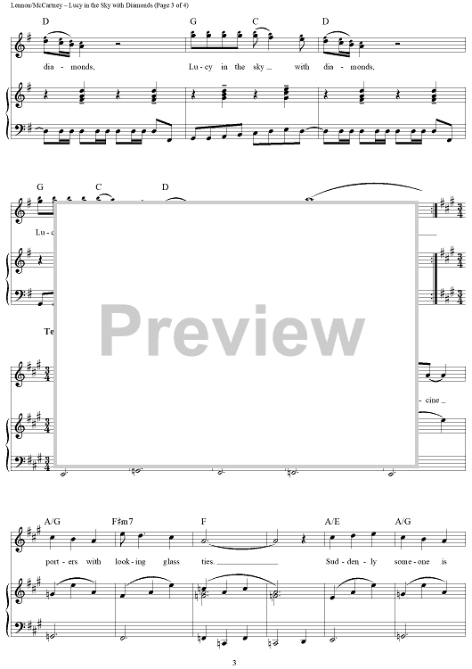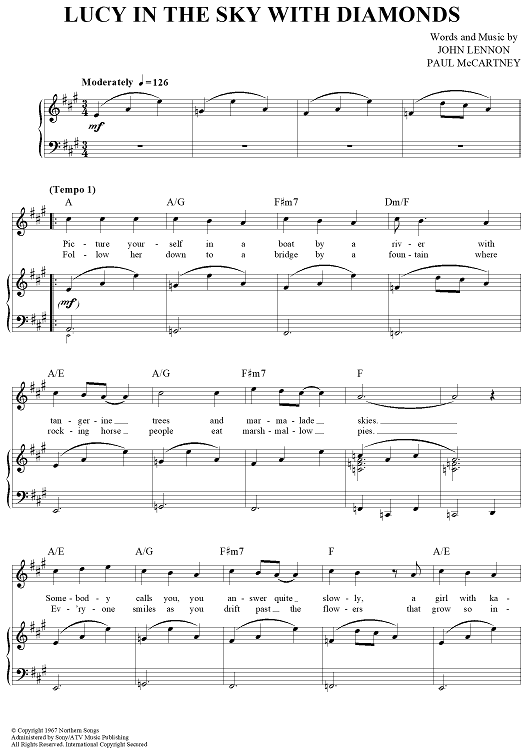 Digital Sheet Music for Lucy in the Sky with Diamonds by Paul McCartney, The Beatles, John Lennon scored for Piano/Vocal/Chords; id:361924