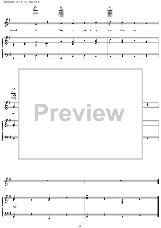 Digital Sheet Music for Lucy Locket by Traditional scored for Piano/Vocal/Chords; id:289098