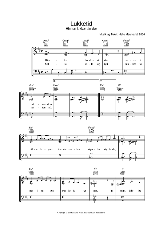 Digital Sheet Music for Lukketid by Helle Marstrand scored for Piano/Vocal/Chords; id:389919