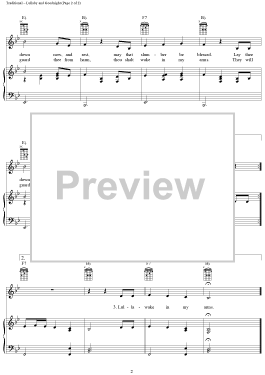 Digital Sheet Music for Lullaby and Goodnight by Traditional scored for Piano/Vocal/Chords; id:289099