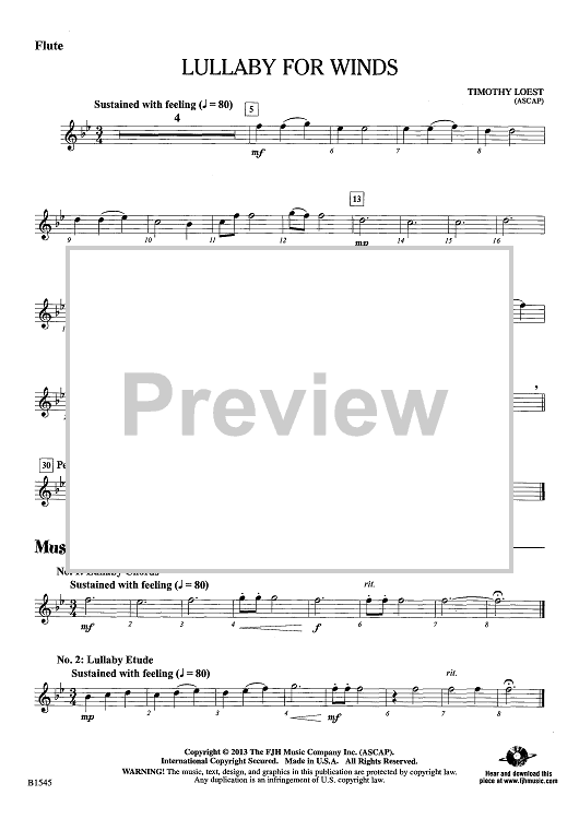 "Lullaby for Winds - Flute" Sheet Music by Timothy Loest