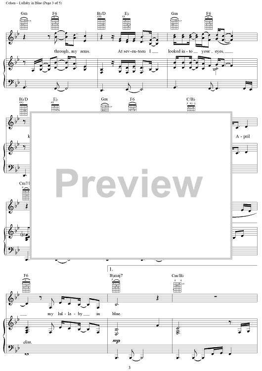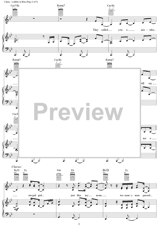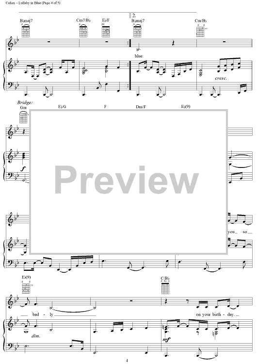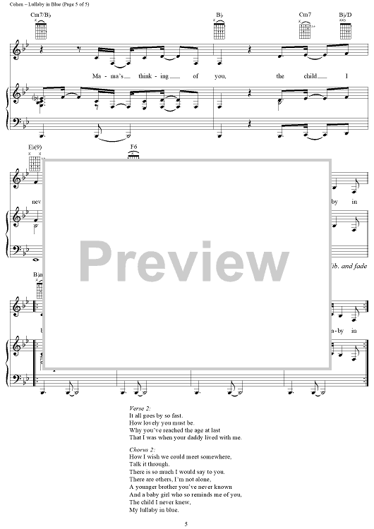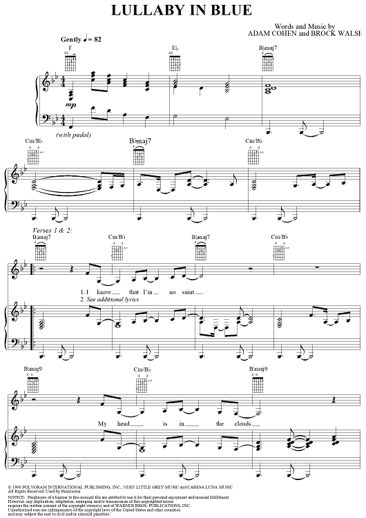Digital Sheet Music for Lullaby in Blue by Brock Walsh, Adam Cohen, Bette Midler scored for Piano/Vocal/Chords; id:139890