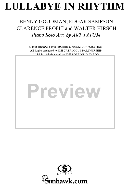 Digital Sheet Music for Lullaby in Rhythm by Art Tatum, Clarence Profit, Walter Hirsch, Benny Goodman, Edgar Sampson scored for Piano Solo; id:112163