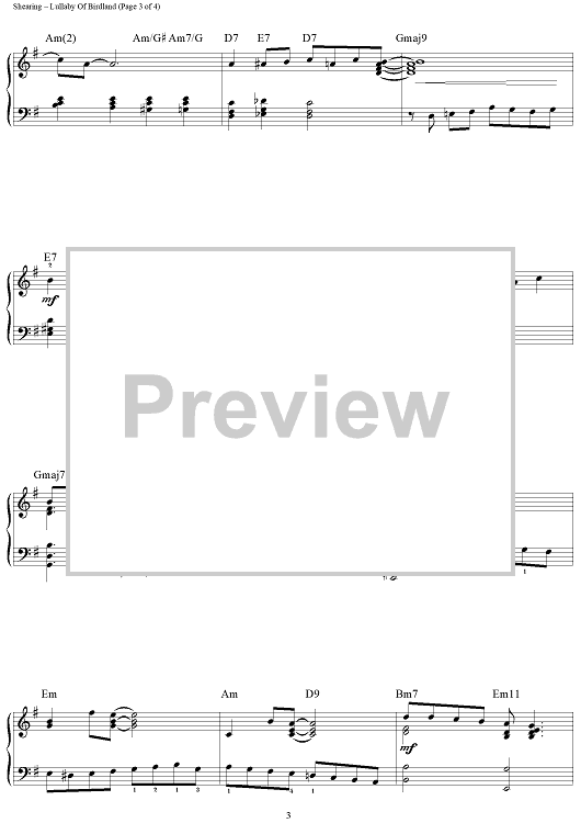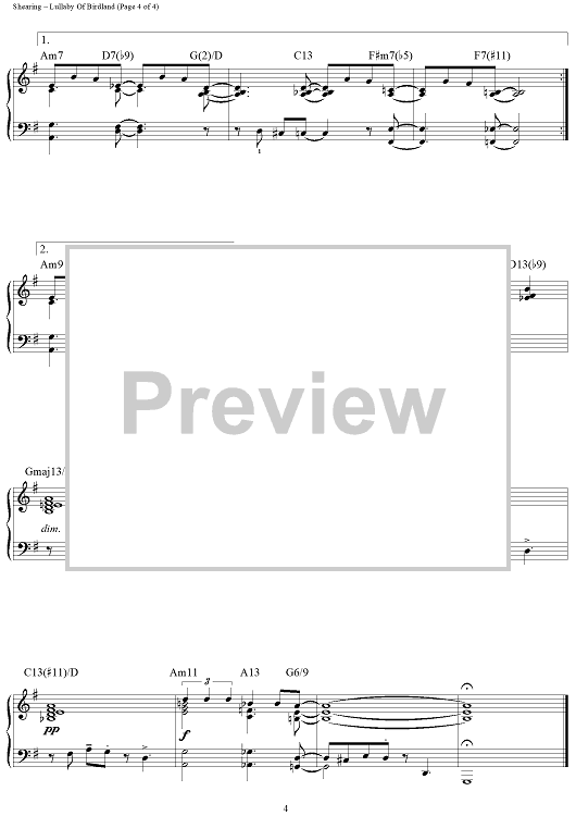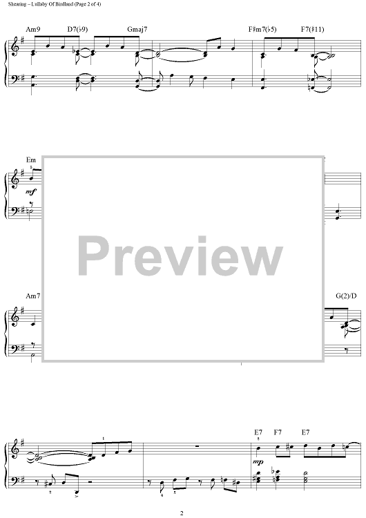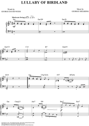 "Lullaby Of Birdland" Sheet Music by George Shearing