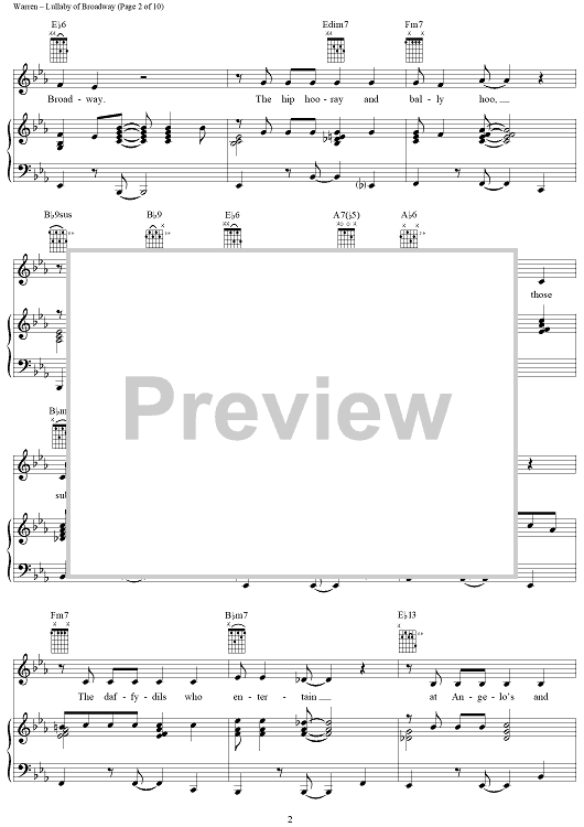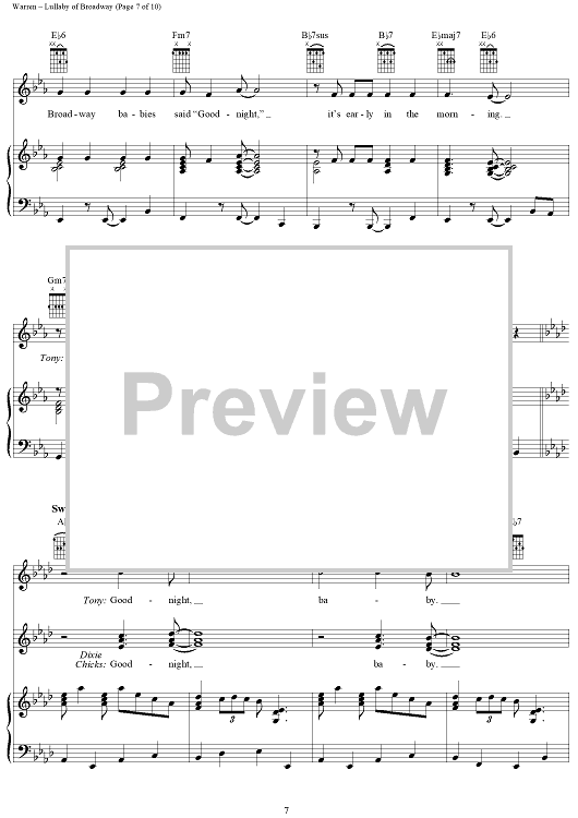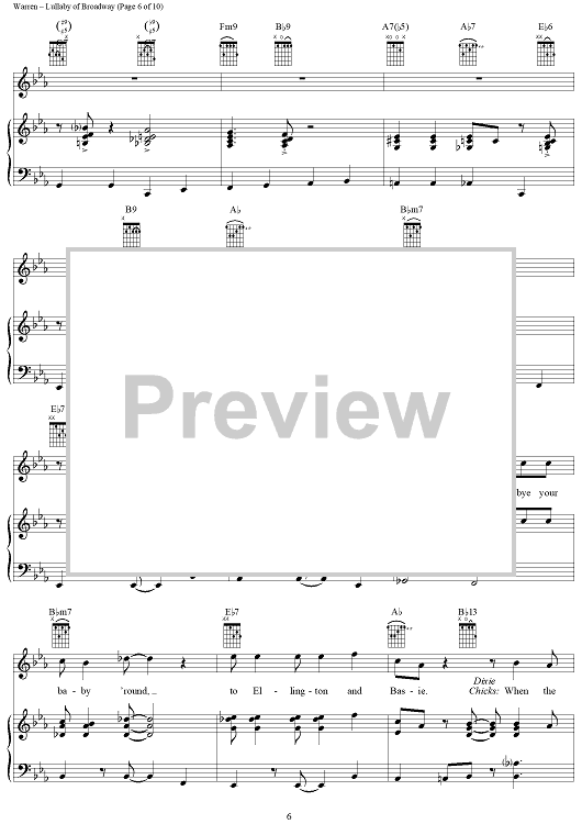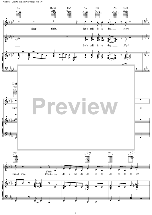 Digital Sheet Music for Lullaby of Broadway by Harry Warren, The Chicks, Tony Bennett, Al Dubin scored for Piano/Vocal/Chords; id:359338