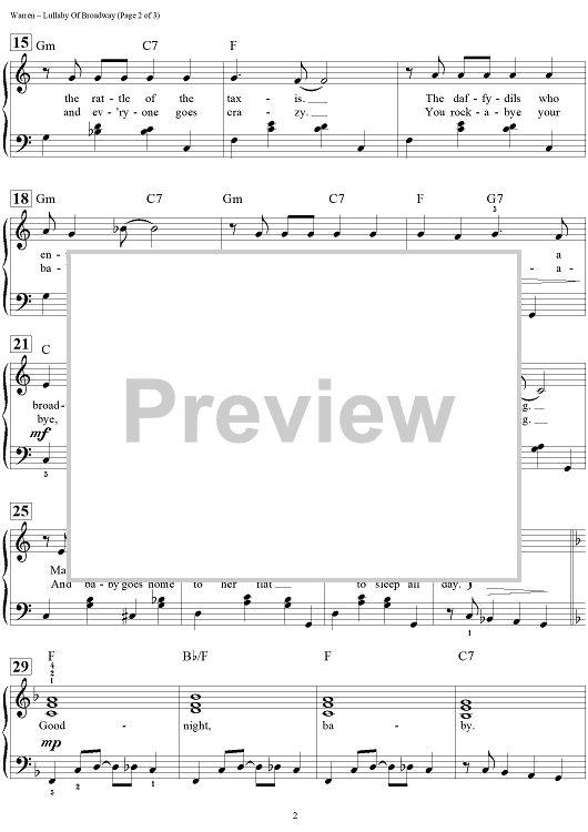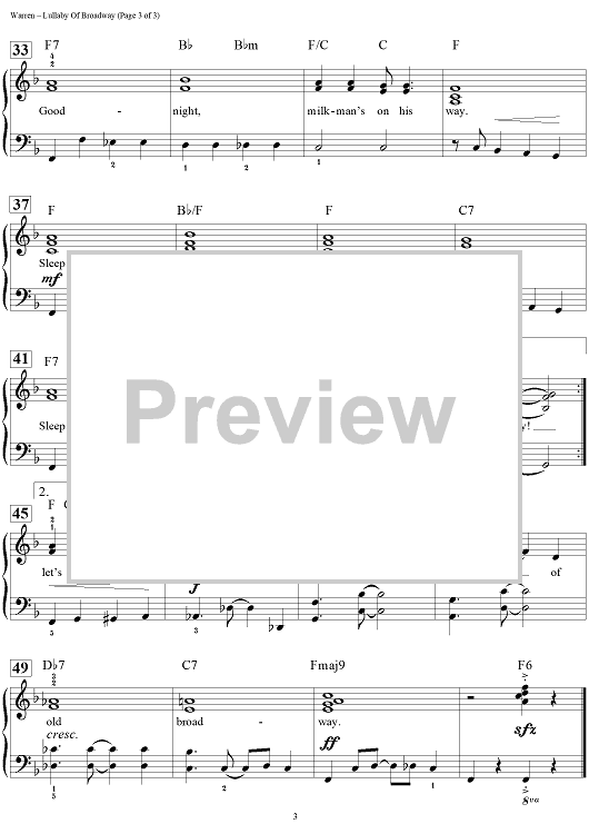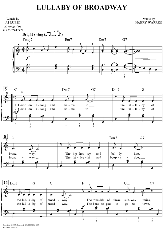Digital Sheet Music for Lullaby of Broadway by Dan Coates, Harry Warren, Al Dubin scored for Easy Piano/Vocal/Chords; id:456562